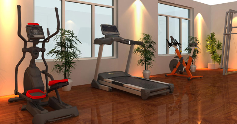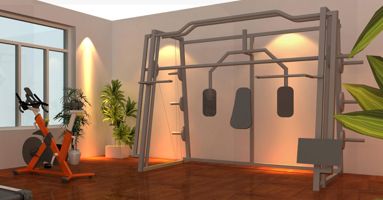 此方案主要由有氧器材和多站位力量器材組成,適用于家庭健身房使用。